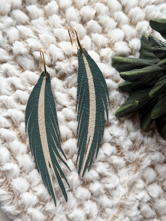 Feather Leather Earrings | Green