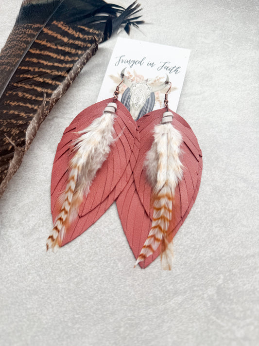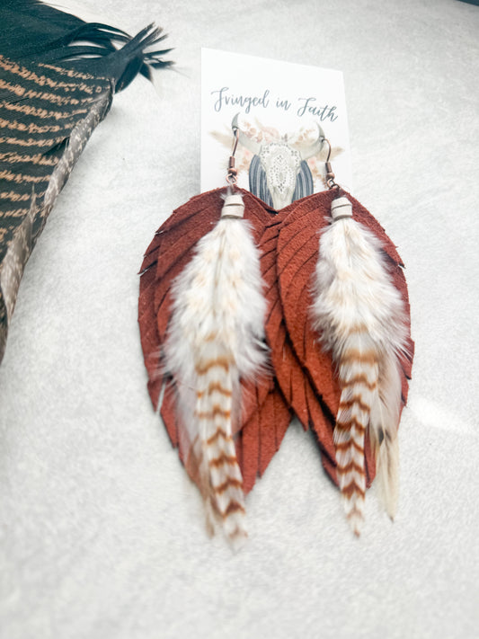 Ronan Fringe Feather Earrings | Rust