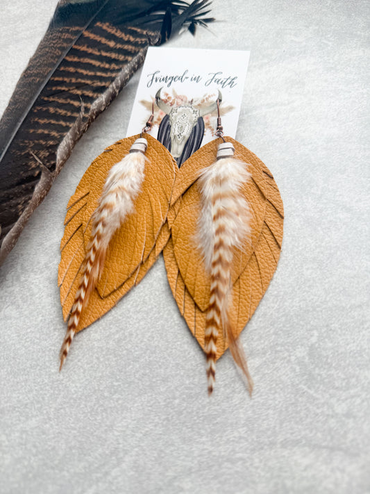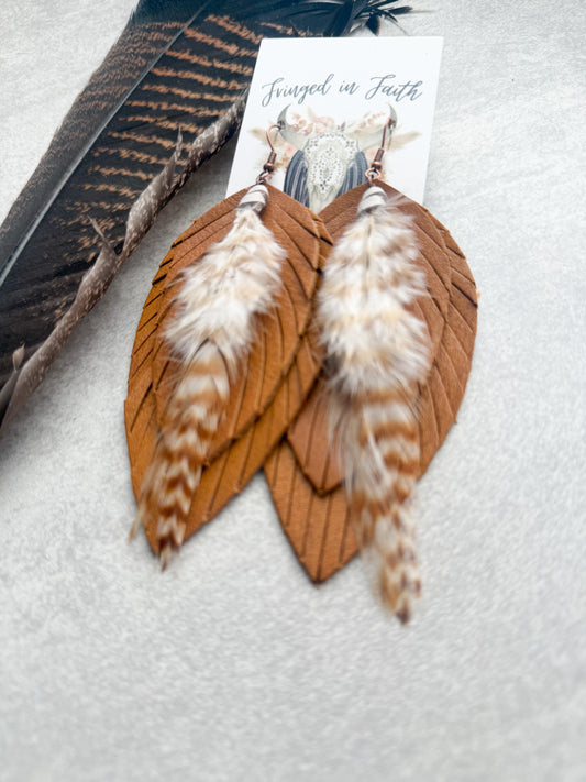 Ronan Fringe Feather Earrings | Tan
