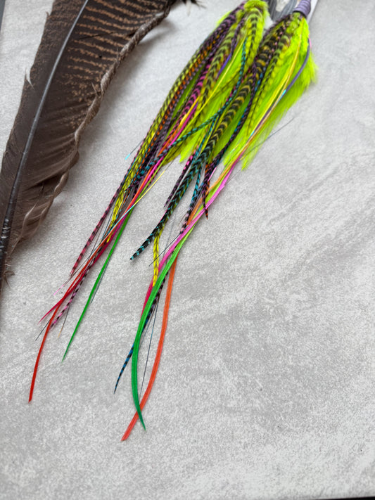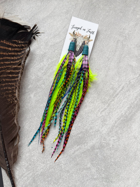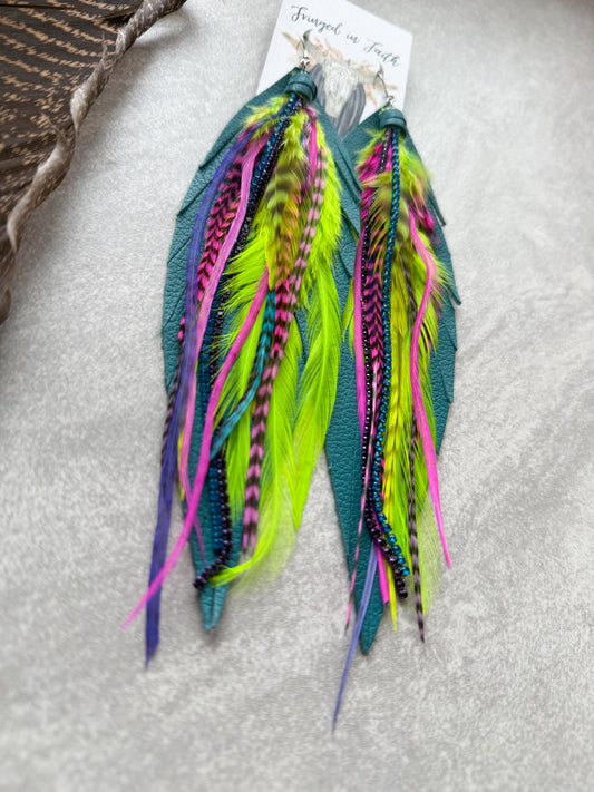 Sold outNeon Feather Earrings w Leather