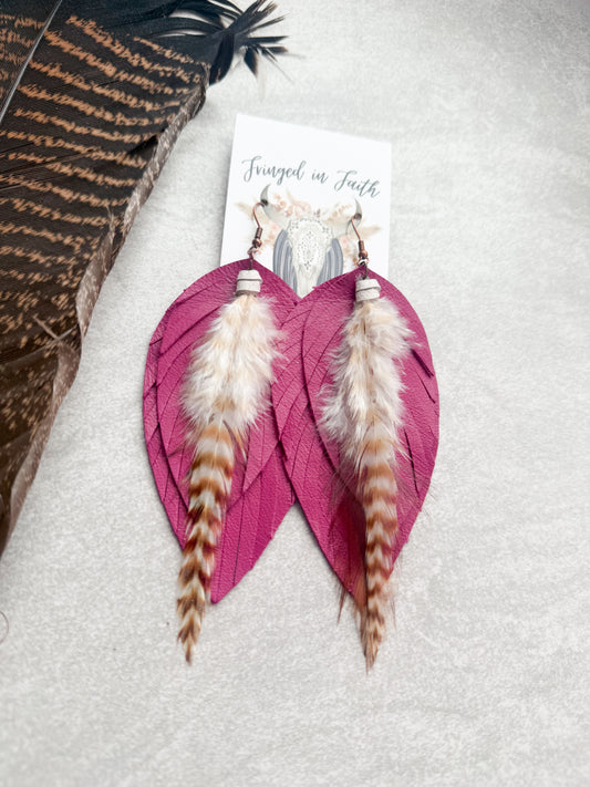 Ronan Fringe Feather Earrings | Magenta