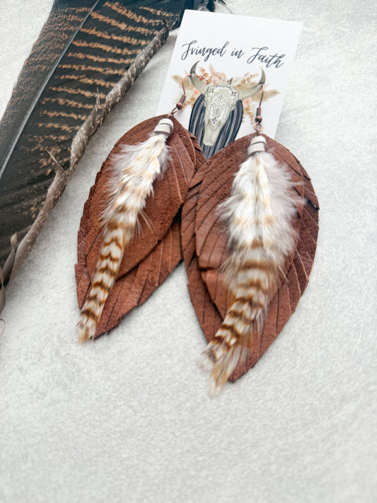 Ronan Fringe Feather Earrings | Brown