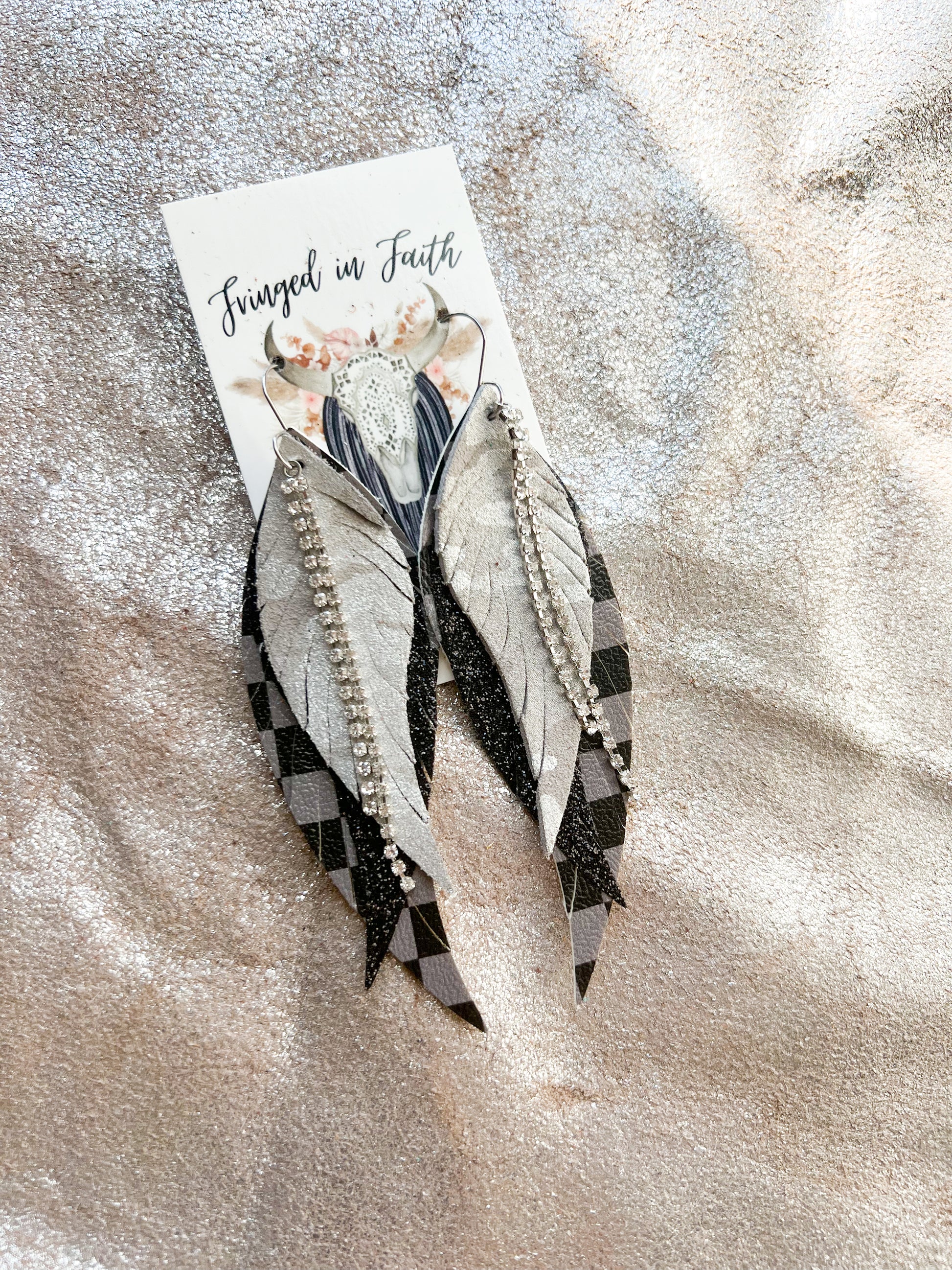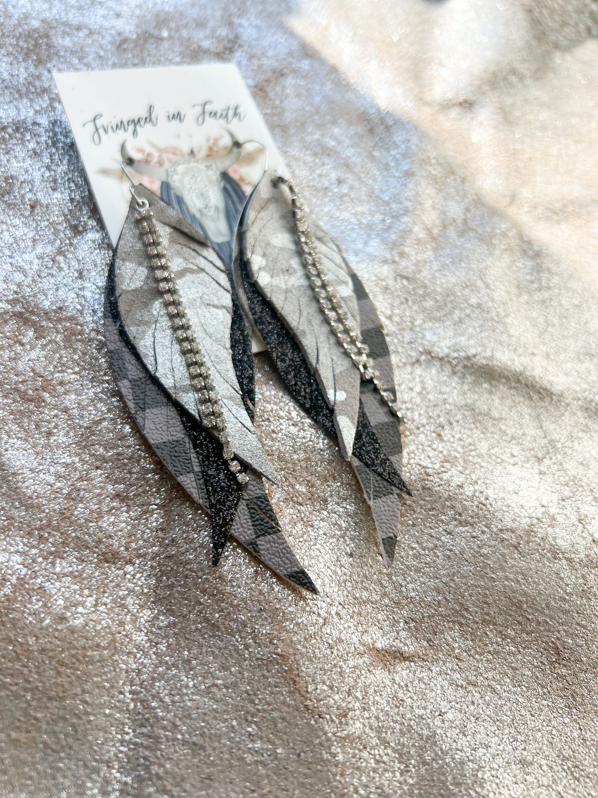 Size: Approx 4" L, consists of 3 layers of leather and additional layers of chain/charms depending on the style, and feathers