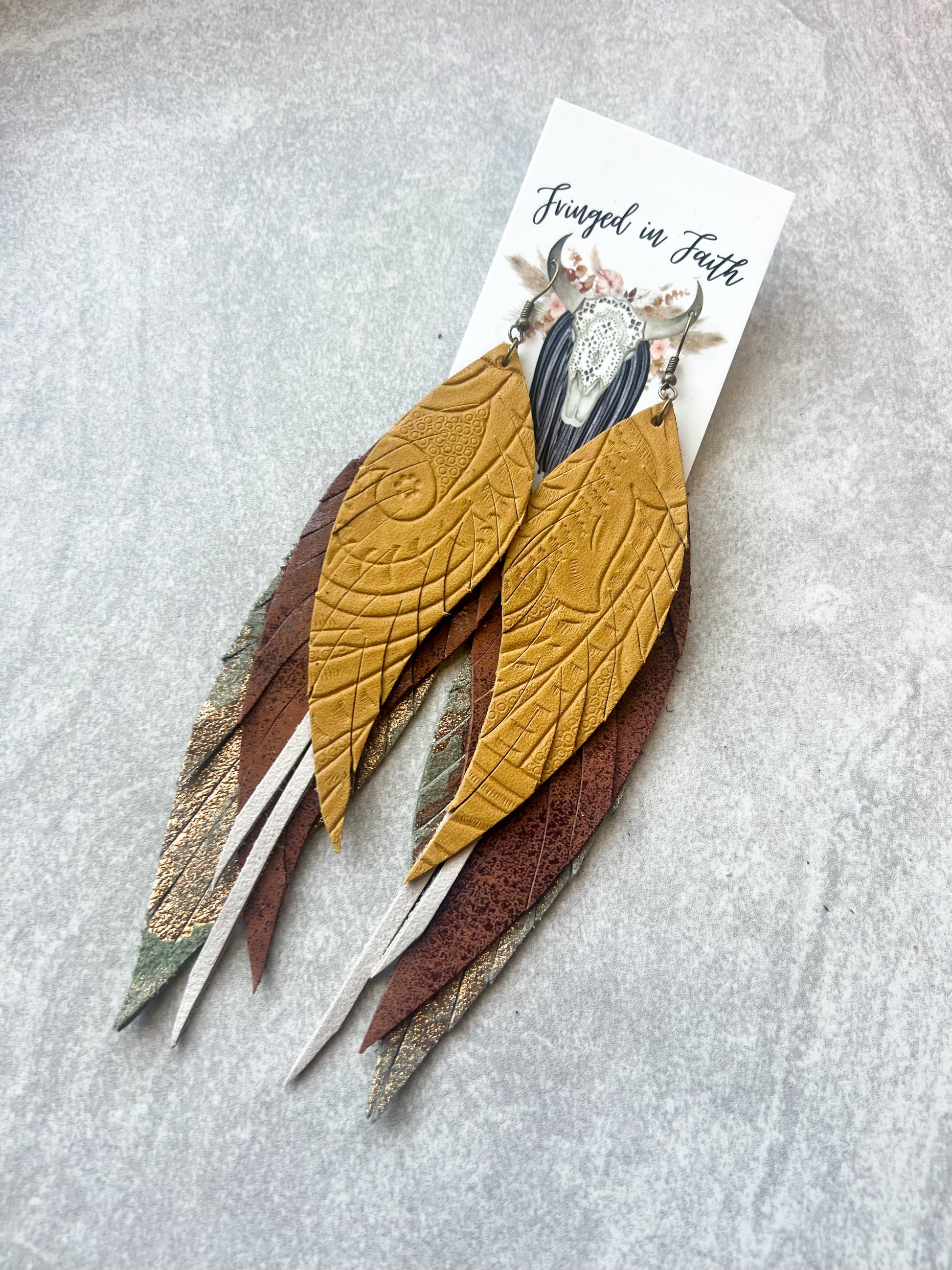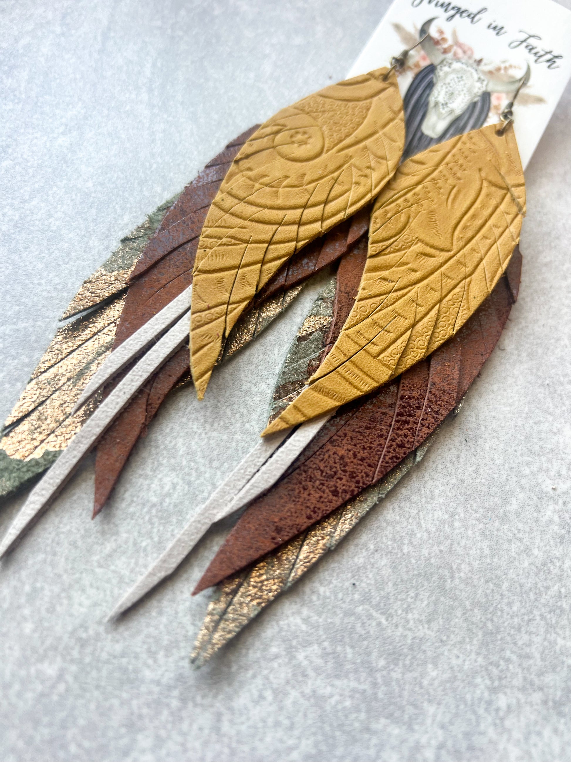 Size: Approx 5" L, consists of 3 layers of leather and additional layers of chain/charms depending on the style, and feathers